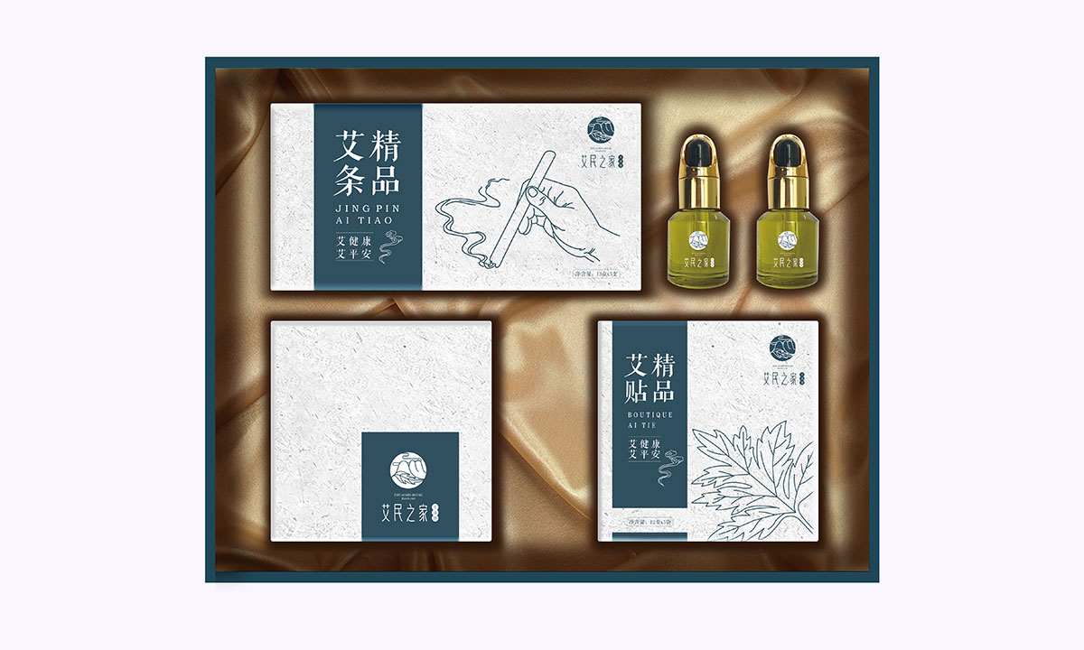 2018-01-09李時珍在《本草綱目》記載蘄艾是養生古方,這種隨處可見,每到端午家家戶戶門前都要懸掛的草本植物,在艾民之家成為健康、養生、綠色禮贈的高端品牌。我們接手艾民之家的品牌和包裝設計之后,首先是定位,艾民之家期望將這款產品打造成中高端的健康禮品,宣傳送禮送健康的概念。在這一方向的指引下,在眾多的蘄艾產品中,我們與客戶共同選擇了四款產品進行搭配,以滿足功能上的需求,其次是設計了艾民之家的品牌LOGO,logo將中國傳統國畫中的山、云、葉的符號通過現代創意設計手法,展現了蘄艾來自大自然,來自祖國傳統醫學寶庫。雖然傳統,但不失現代時尚之風。品牌LOGO確定后,開始了產品的包裝設計,在創意設計上,選擇具有中國特色文化的白描手法,表現艾條、艾葉、李時珍的形象,讓產品具有文人氣息,精選棉質紋理紙體現出產品的質感,豎排的文字營造了《本草綱目》的場景,全系列產品包裝設計雖然古韻古樸,但依然顯得現代時尚之感!