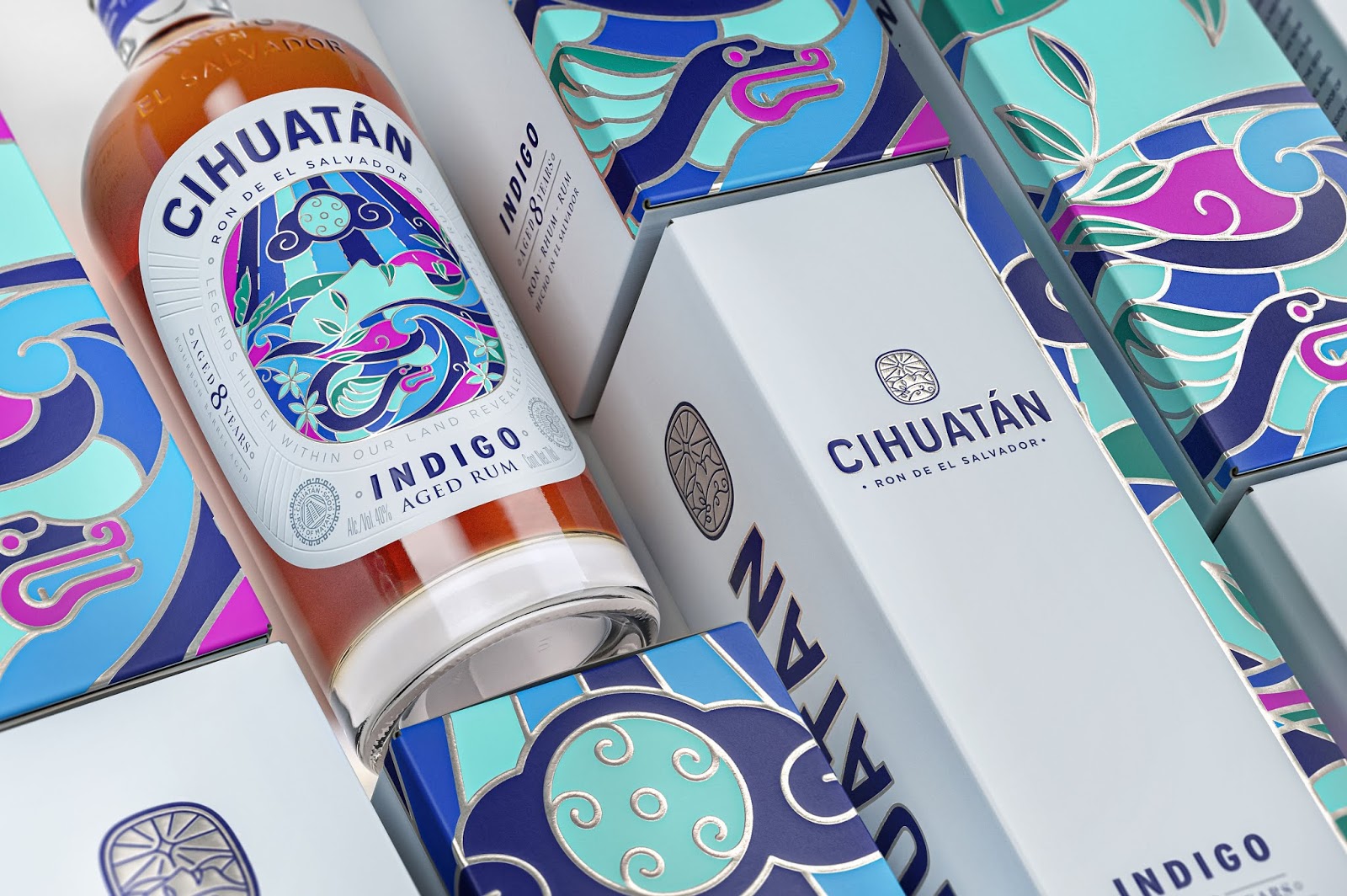 Cihuatan是一個來自薩爾瓦多的特制朗姆酒品牌。在納瓦特方言中,“Cihuatán”的意思是“女神熟睡的土地”。通過插圖刻畫鮮花綻放過程中的力量和美麗,通過女神睡顏表達(dá)女神的繁衍生息的力量。在工藝上“女神”的輪廓運用燙銀和凸紋的技術(shù),讓畫面有了些許立體感,增強(qiáng)畫面層次。色彩上,采用當(dāng)?shù)靥赜械呐屠渖钆浞绞?,讓文化的符號更加深入人心?/span>